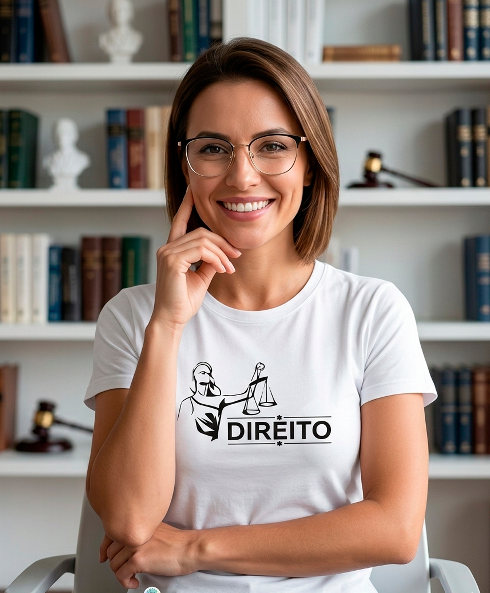Inspirada na força e no equilíbrio da justiça, esta camiseta apresenta a iconografia clássica do curso de Direito de forma estilizada e moderna. É a escolha ideal para o aluno que vive a rotina da faculdade ou para o profissional que preza por um visual casual sem perder a autoridade do seu campo.